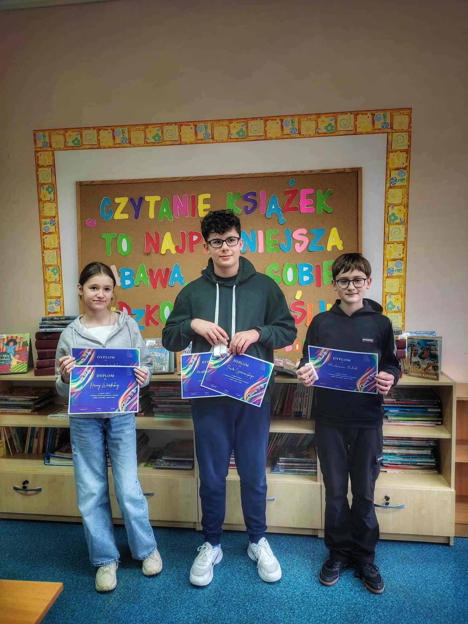 Dnia 27.02 odbyło się wręczenie dyplomów i nagród za Szkolny Konkurs Graficzny w dwóch kategoriach. W kategorii oznaka z logiem szkoły I miejsce – Paweł Czerniawski kl. 7b II miejsce – Iga Zajączkowska kl. 7b III miejsce – Hanna Wardecka kl. 5b W kategorii grafika na koszulkę z logiem szkoły …