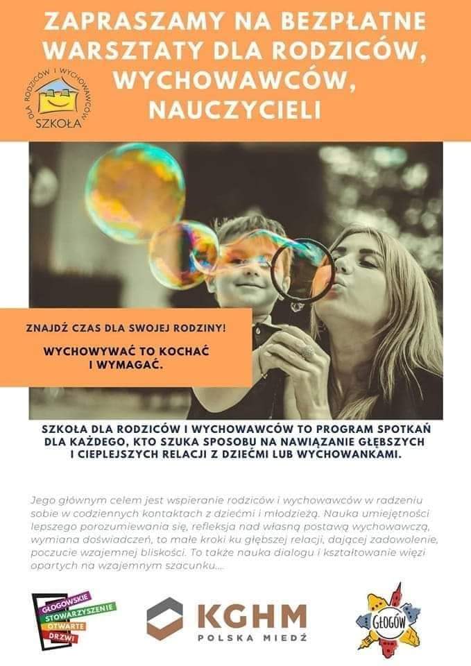 Głogowskie Stowarzyszenie „Otwarte Drzwi” zaprasza na kolejną edycję programu „Szkoła dla rodziców i wychowawców”. Zapisy i szczegółowe informacje udziela prowadzący pod numerem 503-135-750 (pon.-pt.) lub osobiście w Głogowskim Stowarzyszeniu „Otwarte Drzwi” ul. Poczdamska 1 w każdy poniedziałek od 16.00. Warsztaty planowane są od soboty (07.10.2023r.) godz. 10.00. Warsztaty to cykl 10 spotkań …