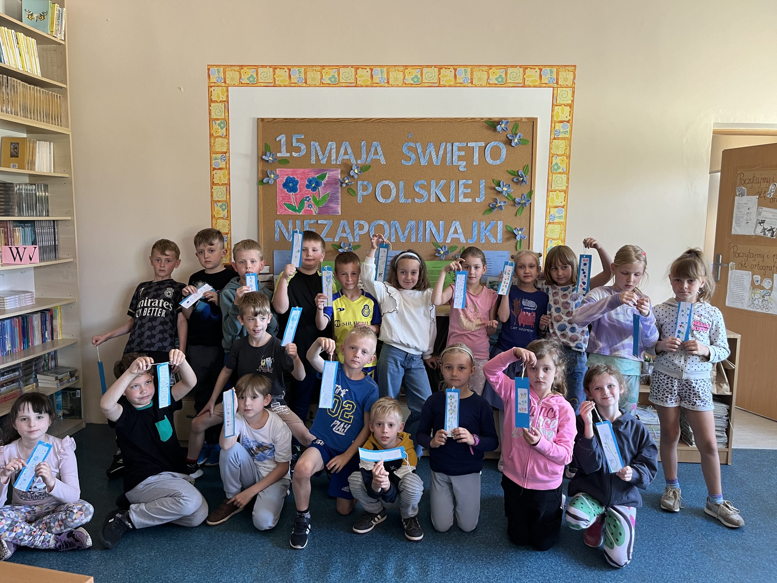 15 maja to Święto Polskiej Niezapominajki. W dni poprzedzające uroczystość w bibliotece szkolnej uczniowie klas pierwszych zapoznali się z ideą tego święta. Oglądali żywe okazy kwiatka i slajdy pokazujące jego walory, wysłuchali bajkowego opowiadania o kwiatku pt. „Pamiętliwa Niezapominajka”. Każde dziecko wykonało „niezapominajkową„ zakładkę do książki. Mamy …