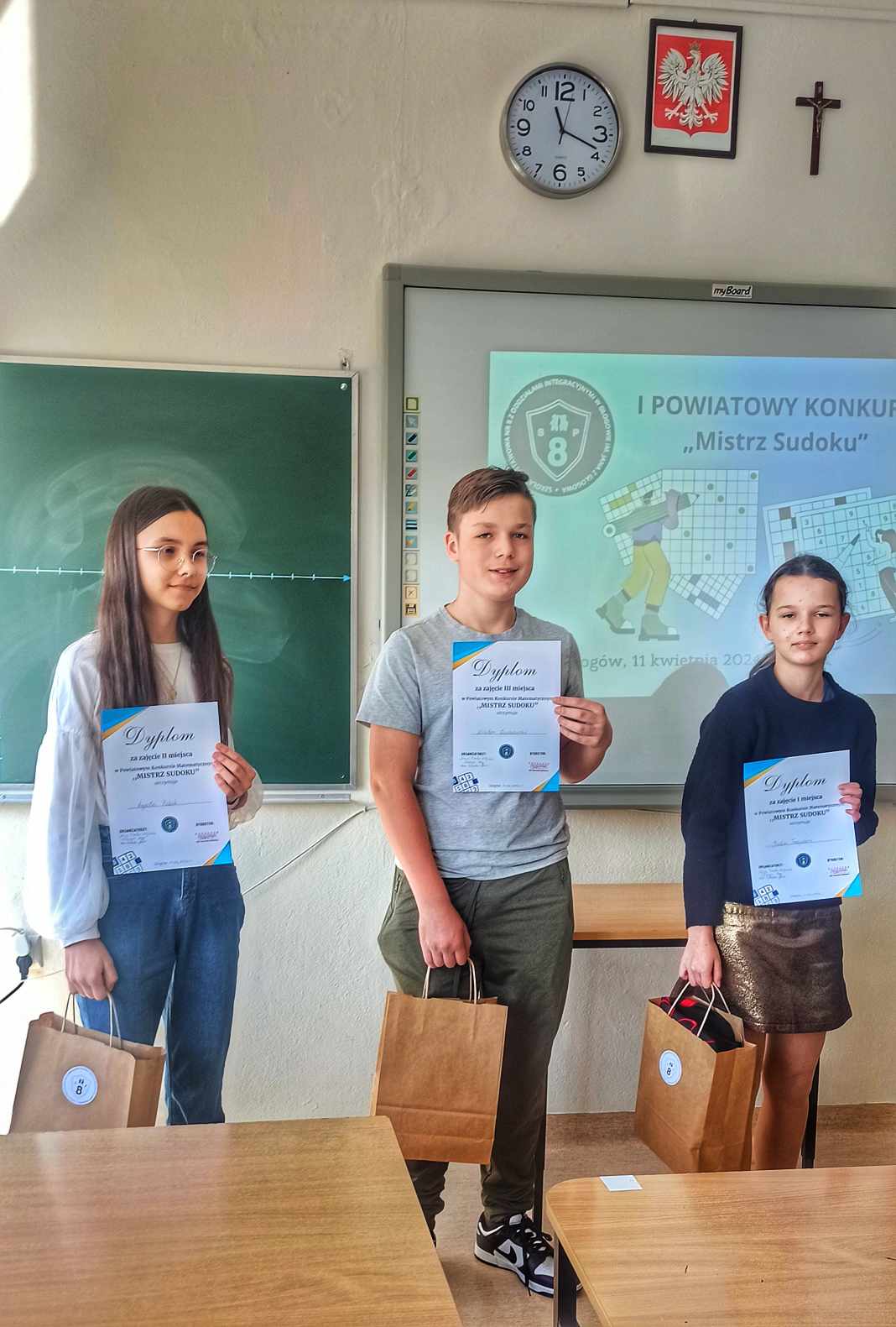 Dnia 11.04.2024 w Szkole Podstawowej nr 8 odbył się I Powiatowy Konkurs „Mistrz sudoku”. Naszą szkołę reprezentowali Tymoteusz Wolak kl.6a oraz Wiktor Zimkowski kl.7b. Miło nam poinformować, że Wiktor Zimkowski zdobył III miejsce. Gratulujemy i życzymy dalszych sukcesów.