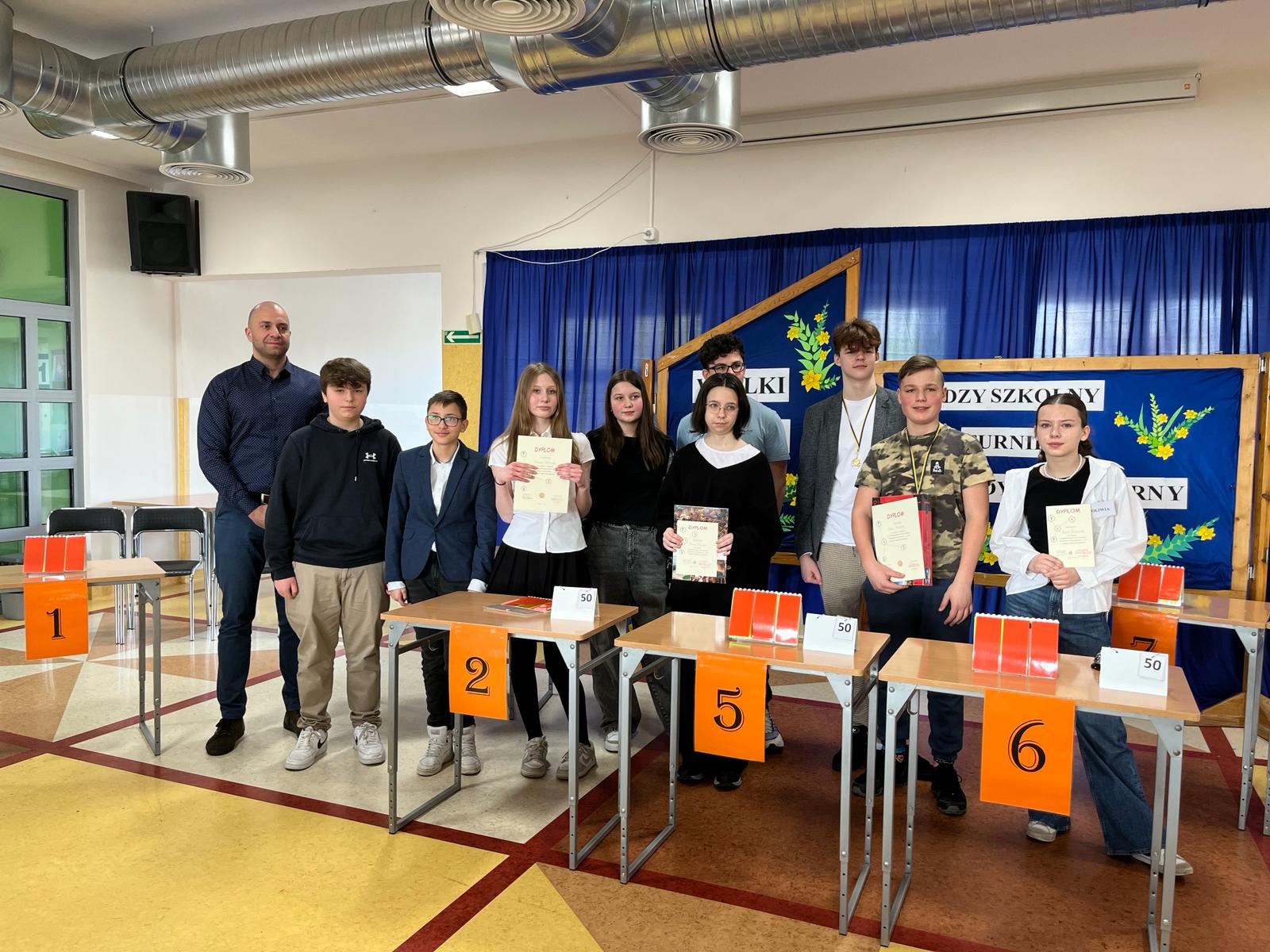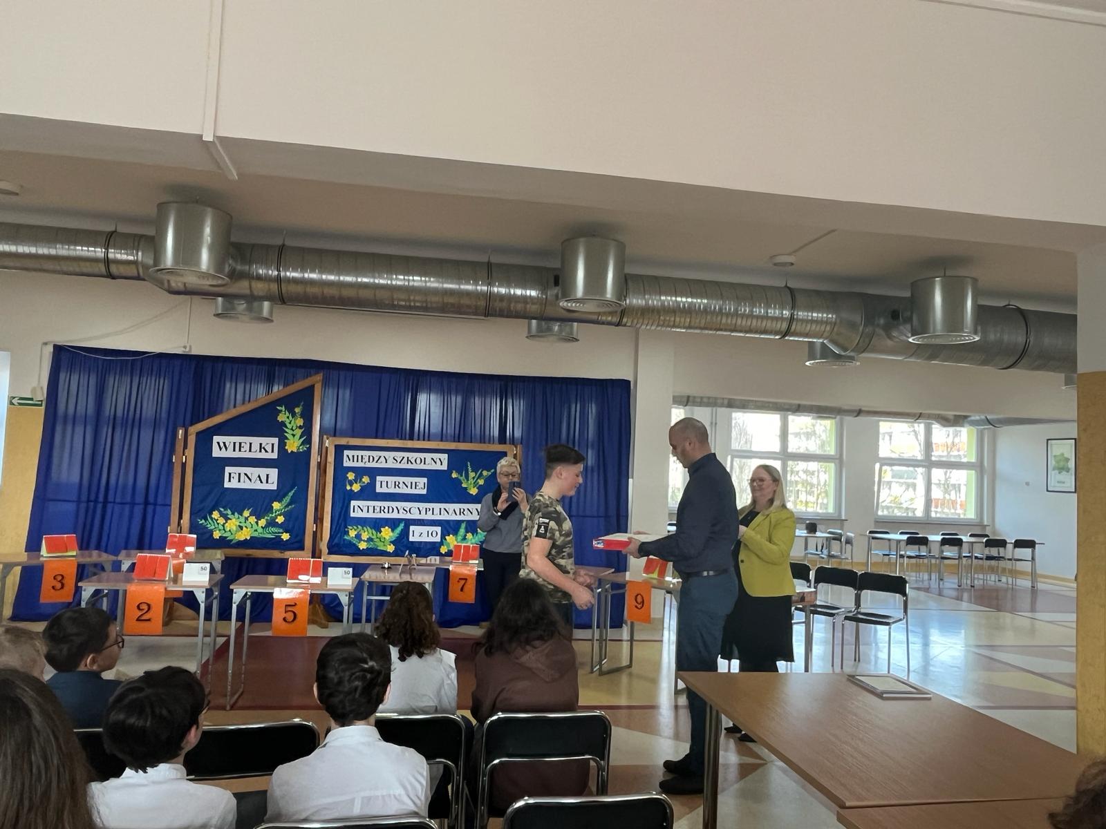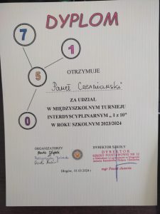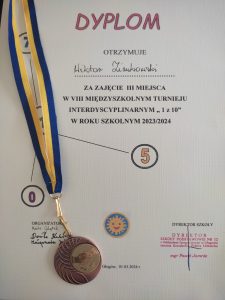Jak co roku w Szkole Podstawowej nr 12 odbył się Międzyszkolny Turniej Interdyscyplinarny 1 z 10. Turniej ten, to świetna zabawa i sprawdzenie swojej ogólnej wiedzy. Naszą szkołę reprezentowali uczniowie klasy 7b: Paweł Czerniawski i Wiktor Zimkowski, który zdobył III miejsce. Wszyscy bawili się świetnie, a my serdecznie gratulujemy 🙂
