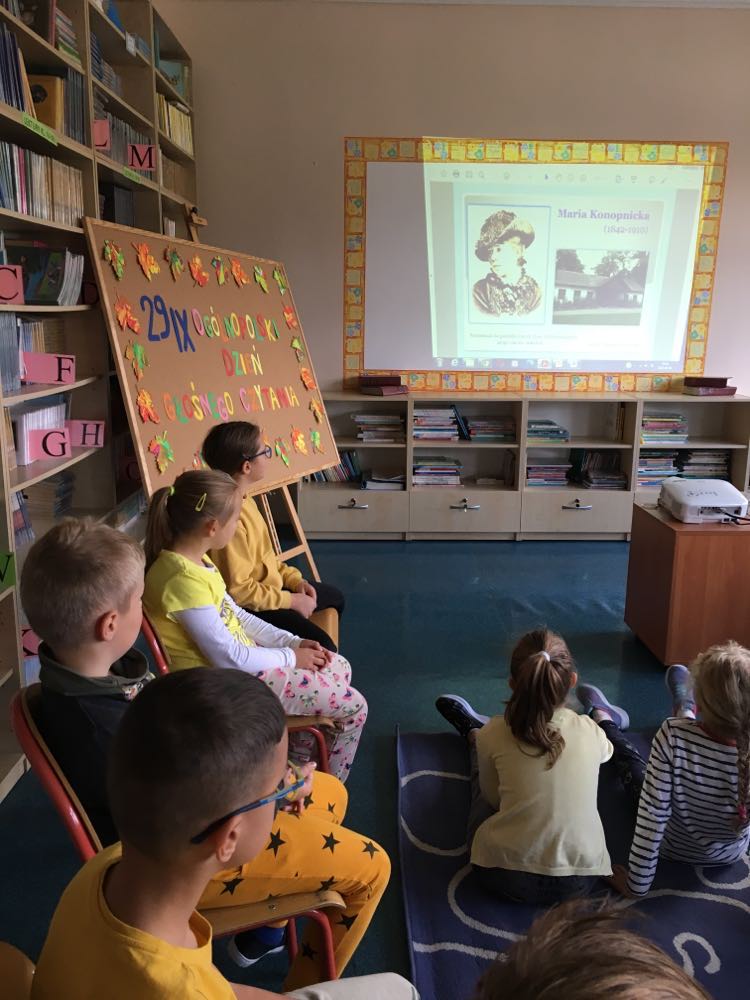 Rok 2022 został ustanowiony przez Sejm Rokiem Marii Konopnickiej. Pisarka została uznana za jedną z najwybitniejszych w historii polskiej literatury. Dlatego też podczas Ogólnopolskiego Dnia Głośnego Czytania uczniowie klas drugich i trzecich na lekcjach w bibliotece szkolnej poznali postać pisarki Marii Konopnickiej, jej zasługi dla Polski oraz wysłuchali wybrane wiersze napisane przez pisarkę.