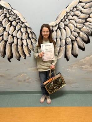 Rozstrzygnięto również konkurs historyczno- plastyczny dla klas 4-6 ulotka promująca miasto Głogów, Dorota Pawłowska z klasy 6a zajęła II miejsce.