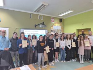 Dnia 16 kwietnia w Szkole Podstawowej nr 12 w Głogowie, odbył się XI Powiatowy Konkurs Historyczny dla uczniów szkół podstawowych ,,Głogów przez wieki”. W kategorii klas 7-8 uczniowie naszej szkoły: Nina Halota z klasy 8a, Daniela Jopp z klasy 8b i Iwo Metelski z klasy 8b zajęli II miejsce.
