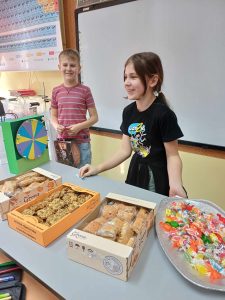 Świętowanie Dnia Kobiet w klasie 4b odbywało się na godzinie wychowawczej. Chłopcy przygotowali łamańce językowe, zagadki i rymowanki z nagrodami dla dziewczynek. Były też kwiaty, słodkości oraz przekąski. Świętowanie przebiegało w atmosferze radości i zabawy.