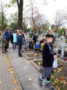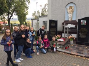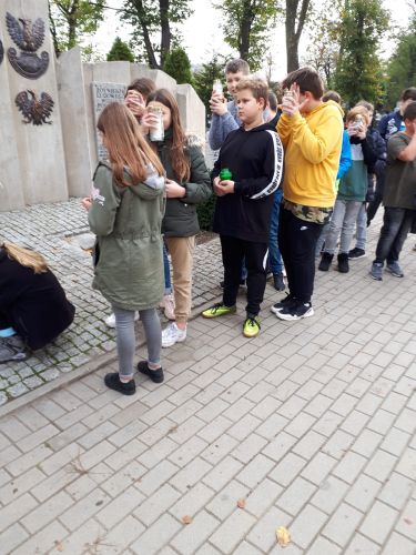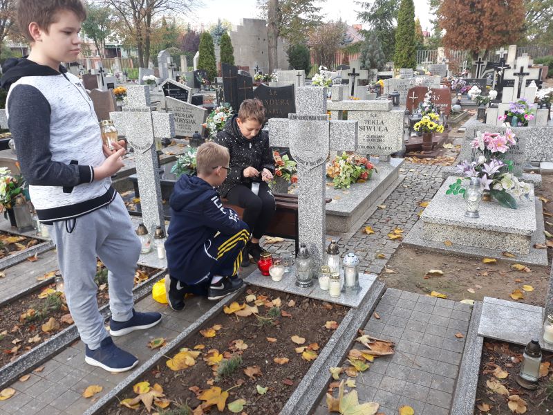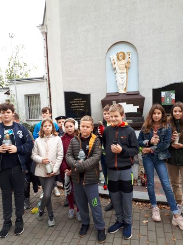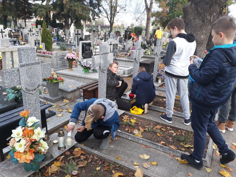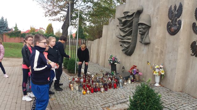 Dnia 25 października 2019 r. uczniowie klas: 5 b, 6 a, 6 c i 6 d wraz z wychowawcami włączyli się w akcję Ministerstwa Edukacji Narodowej „Szkoła pamięta”. Na cmentarzu komunalnym przy ul. Legnickiej w Głogowie zapalili znicze przed Pomnikiem Żołnierzy Wojska Polskiego, Pomnikiem Sybiraków i na grobach bezimiennych żołnierzy oraz zgłębili historię tych miejsc pamięci.