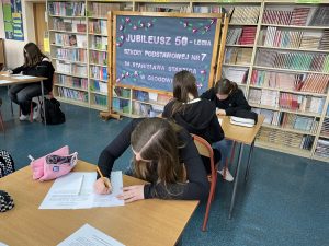 Kaligrafia to sztuka pięknego pisania, do doskonalenia której (corocznie) zachęcamy młodych ludzi naszej szkoły. Okazją do tego, by tę umiejętność zaprezentować na forum szkoły był konkurs kaligraficzny, który odbył się 26 kwietnia 2024 roku w naszej szkolnej czytelni. Wzięło w nim udział 21 uczniów z klas 4-8.