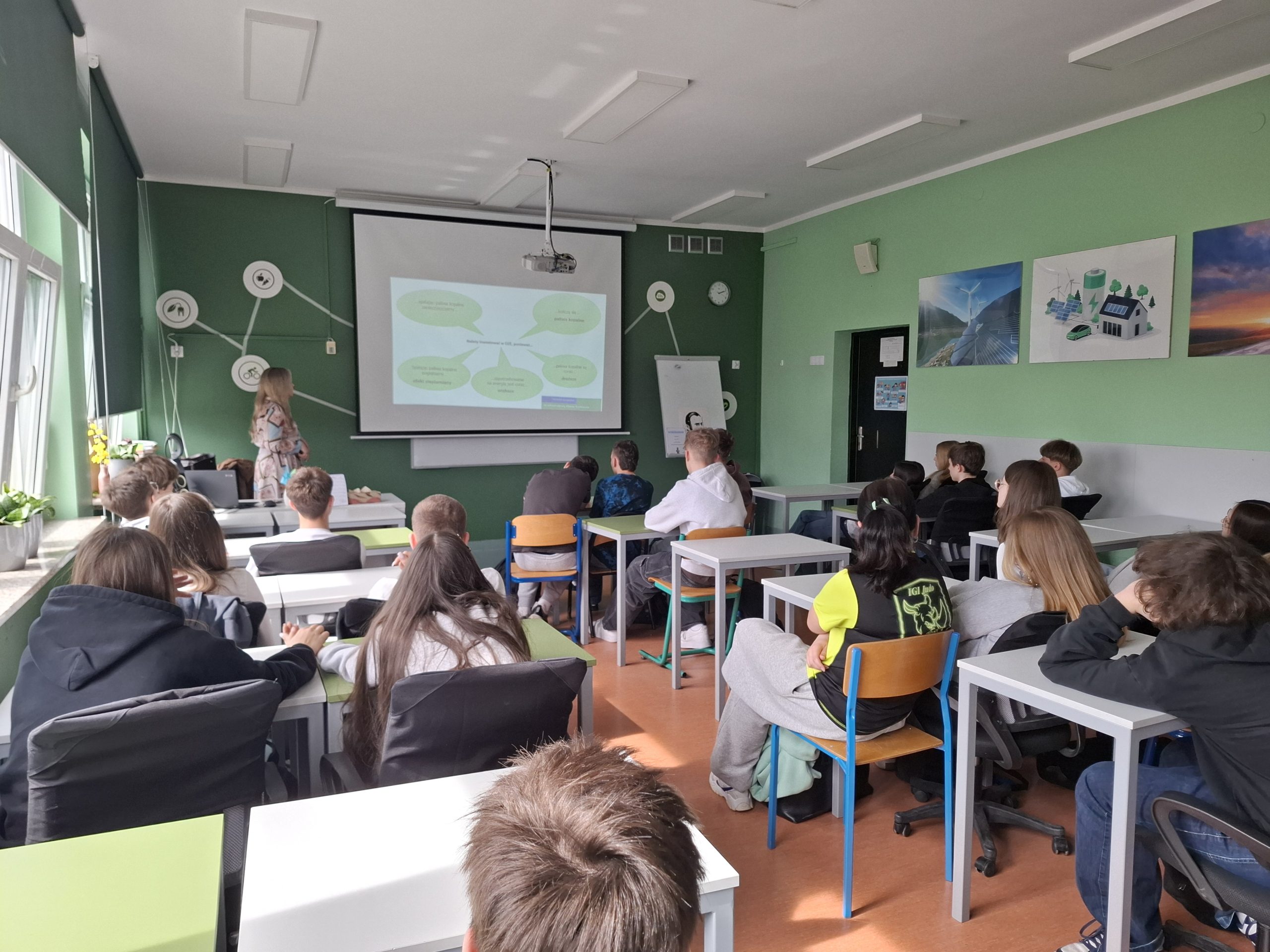 Przez trzy dni odbywały się w naszej szkole warsztaty energetyczne dla klas 1-8. Warsztaty te przeprowadzone były przez Doradcę Klimatyczno- Energetycznego WFOŚiGW we Wrocławiu p. Alicję Czarkowską . Były one prowadzone w formie prezentacji wzbogaconej o pokaz modeli dydaktycznych. Zakres tematyczny obejmował m.in. zagadnienia związane z niską emisją, energią i jej zastosowaniem, odnawialnymi źródłami energii oraz zasadami segregacji odpadów.
