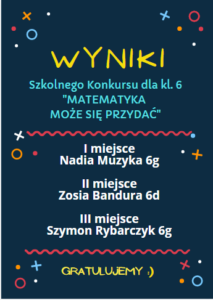 • Wyniki Szkolnego Konkursu dla kl. 6 „MATEMATYKA MOŻE SIĘ PRZYDAĆ”