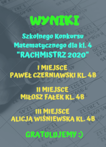 • Wyniki Szkolnego Konkursu Matematycznego dla kl.4 „RACHMISTRZ 2020”