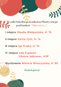 Wyniki Szkolnego Konkursu Polonistycznego pod hasłem „Miej serce…”